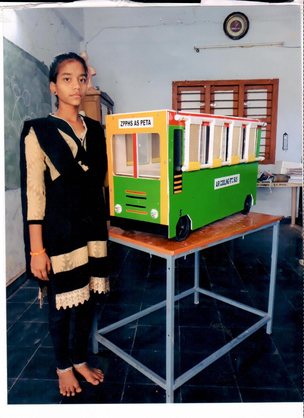 During hot summer season traveling in non-air conditioned buses is a very harsh experience. Especially in villages old aged people and school children suffer a lot and there is always a chance of dehydration and sunstroke due to scorching heat present inside the bus. The student has come up with the project of “Air Cooling RTC Bus” with modified windows consisting of wet pads.