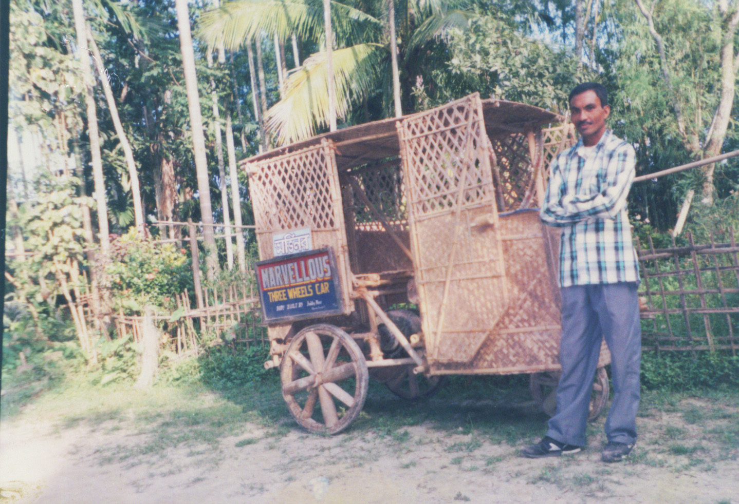 He has made a three-wheeler car/ autorickshaw. The moving parts of this vehicle remain the same- engine, wheels, transmission system, steering system, clutch, brake pedal, etc. The difference is in the vehicle's body. The innovator has made the body of the vehicle, including the chassis using bamboo which is widely grown in various regions of Assam.