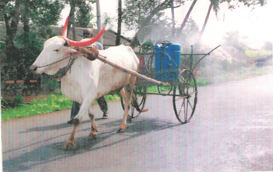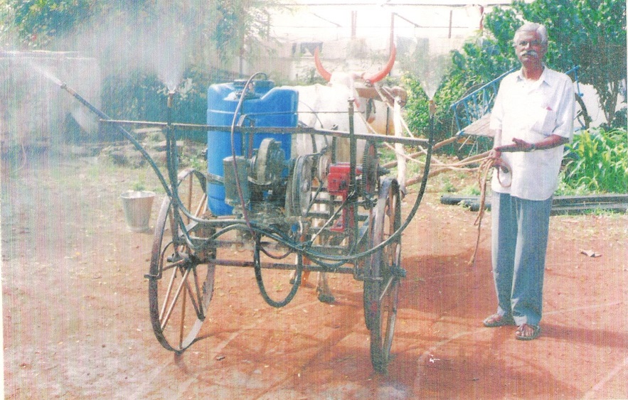 Once while ploughing with bullock in his field, Mr. Baburao got an idea that bullock can be a very good energy source for spraying when the battery of the battery-operated sprayer can not be charged in case of electricity failure.