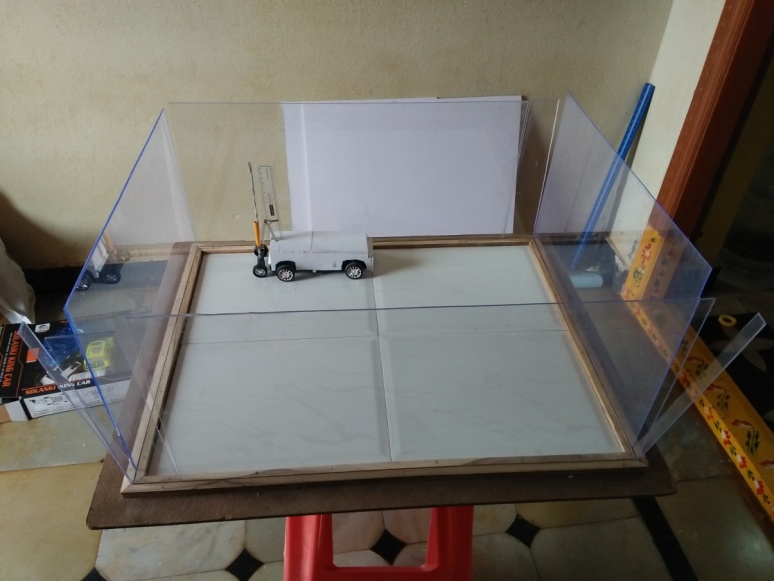 It uses graph paper, pencil scale, etc. mounted on a small vehicle. This vehicle is moved from one end to other room, corridor, etc. and level of the floor is recorded on graph paper. The gadget has been developed especially for masons to ease and increase the efficiency of levelling during tile work or marble laying of rooms, corridors, etc. either on a domestic or commercial level.